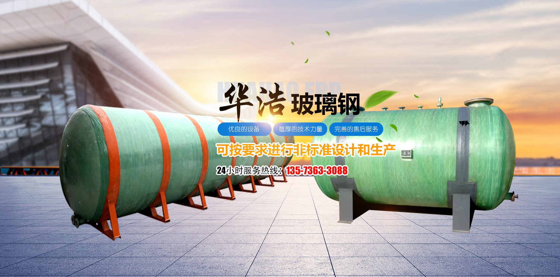 山東華浩玻璃鋼有限公司,位于世界風箏都濰坊市南三十公里處,是生產各種玻璃鋼制品的專業公司。   華浩玻璃鋼生產各種立式、臥式玻璃鋼罐、玻璃鋼儲罐、玻璃鋼運輸罐、標準運輸罐、玻璃鋼鹽酸罐、化學反應罐、真空壓力罐、設備罐、復合罐、玻璃鋼儲槽、大型玻璃鋼容器;玻璃鋼化糞池;各種型號的橫流式、逆流式(圓形、方形)玻璃鋼冷卻塔;機械纏繞玻璃鋼管道、管件、壓力管道,有機、無機通風管道、空調管道;漂液洗鼓、耐腐耐高溫反應釜、印染布車、組合式玻璃鋼水箱、玻璃鋼風機、玻璃鋼不定型工藝品等二百多個品種。